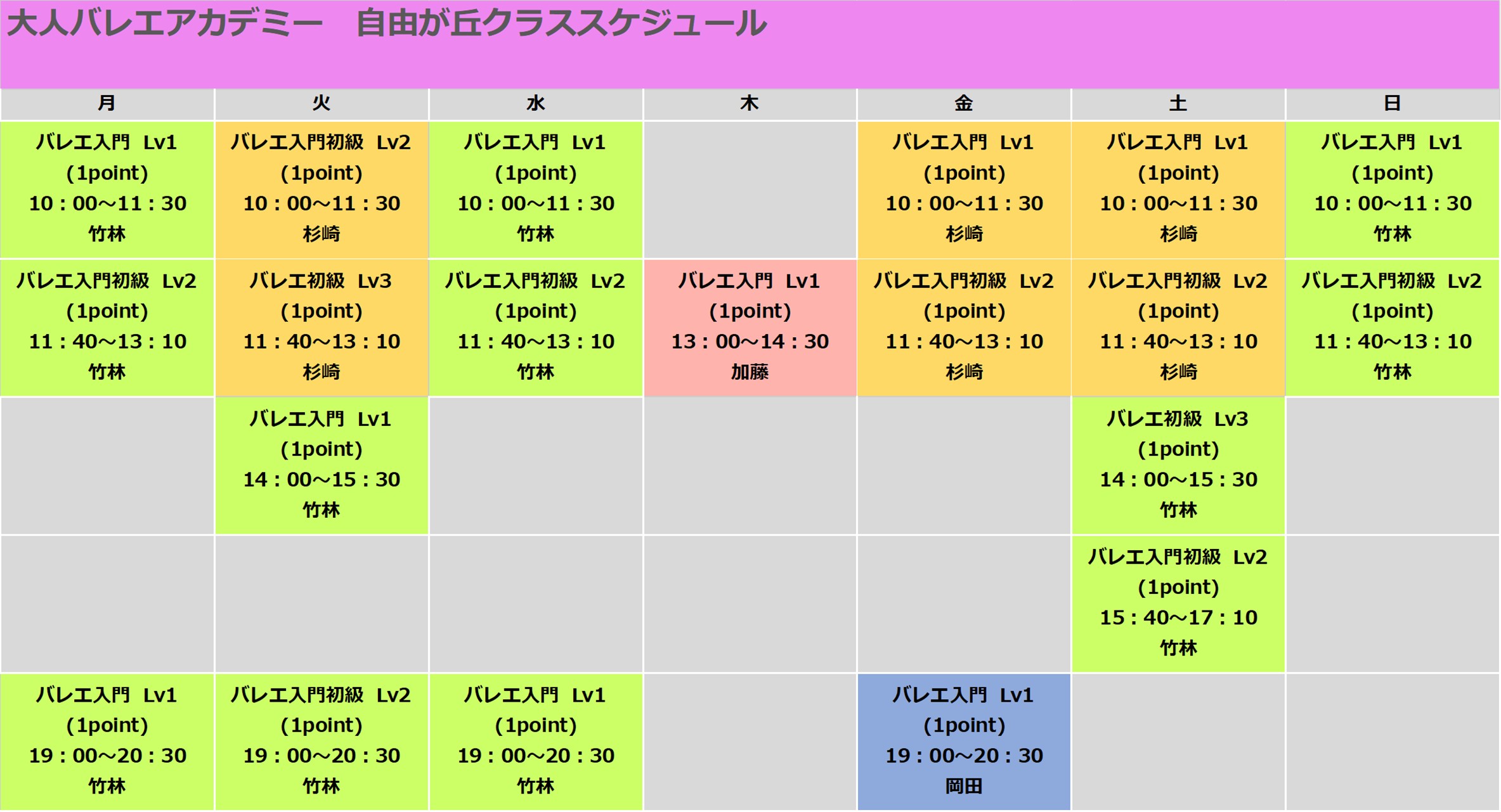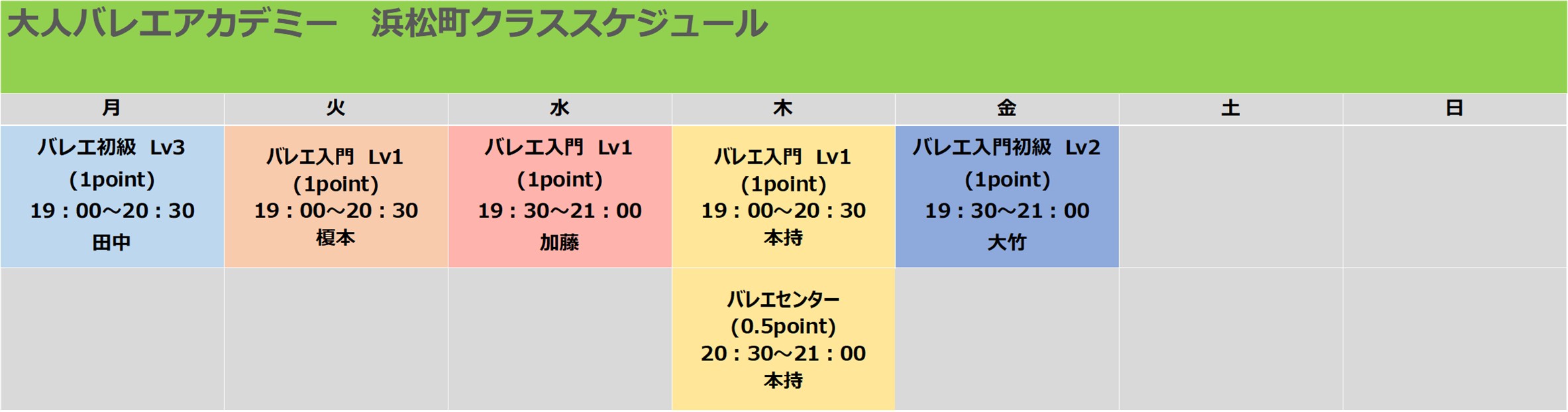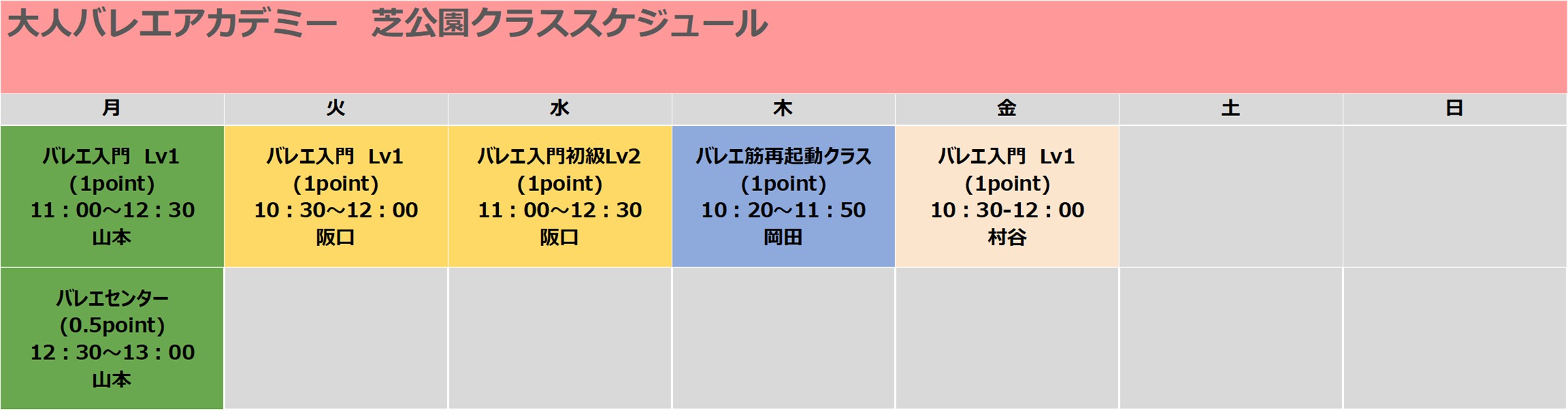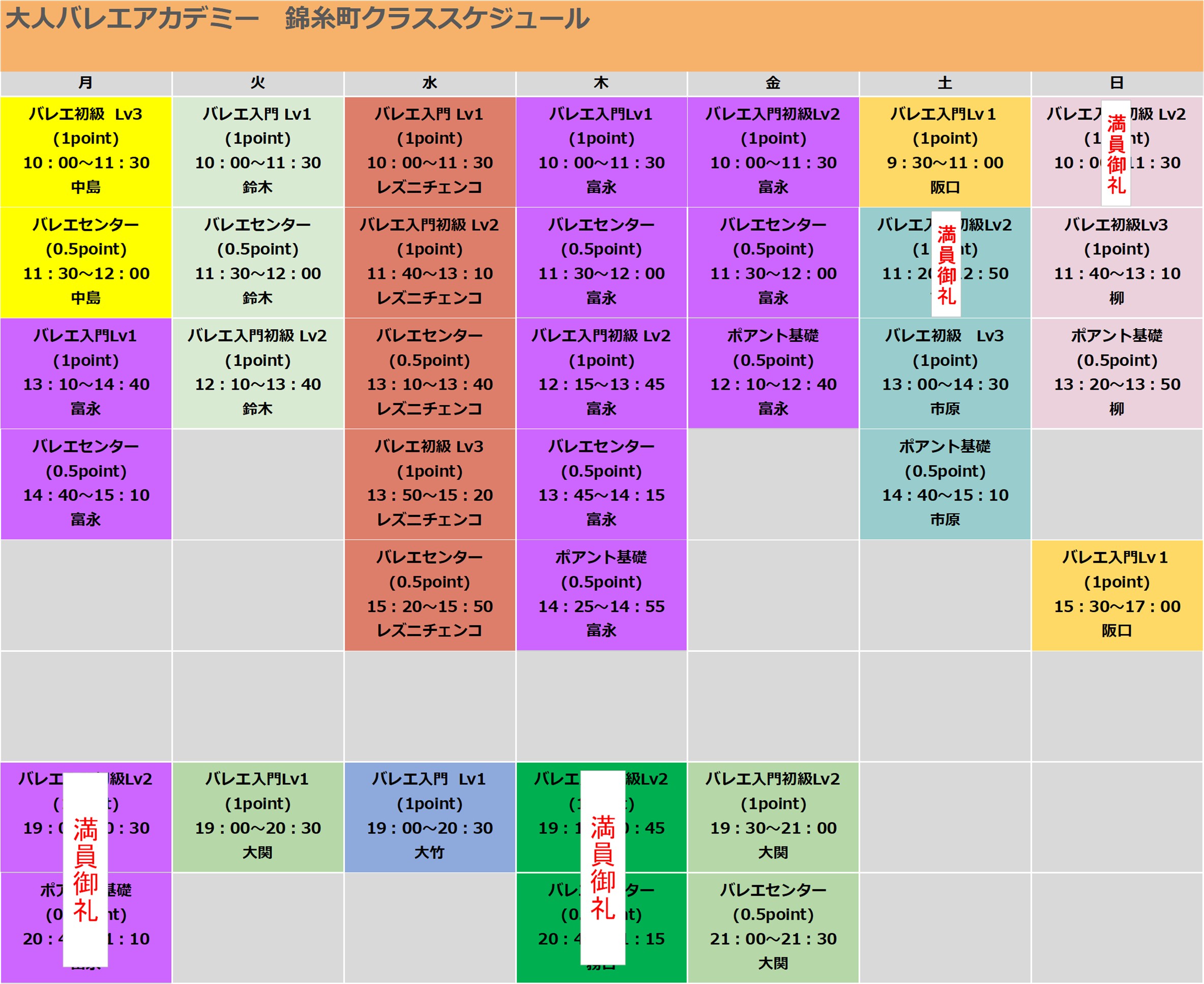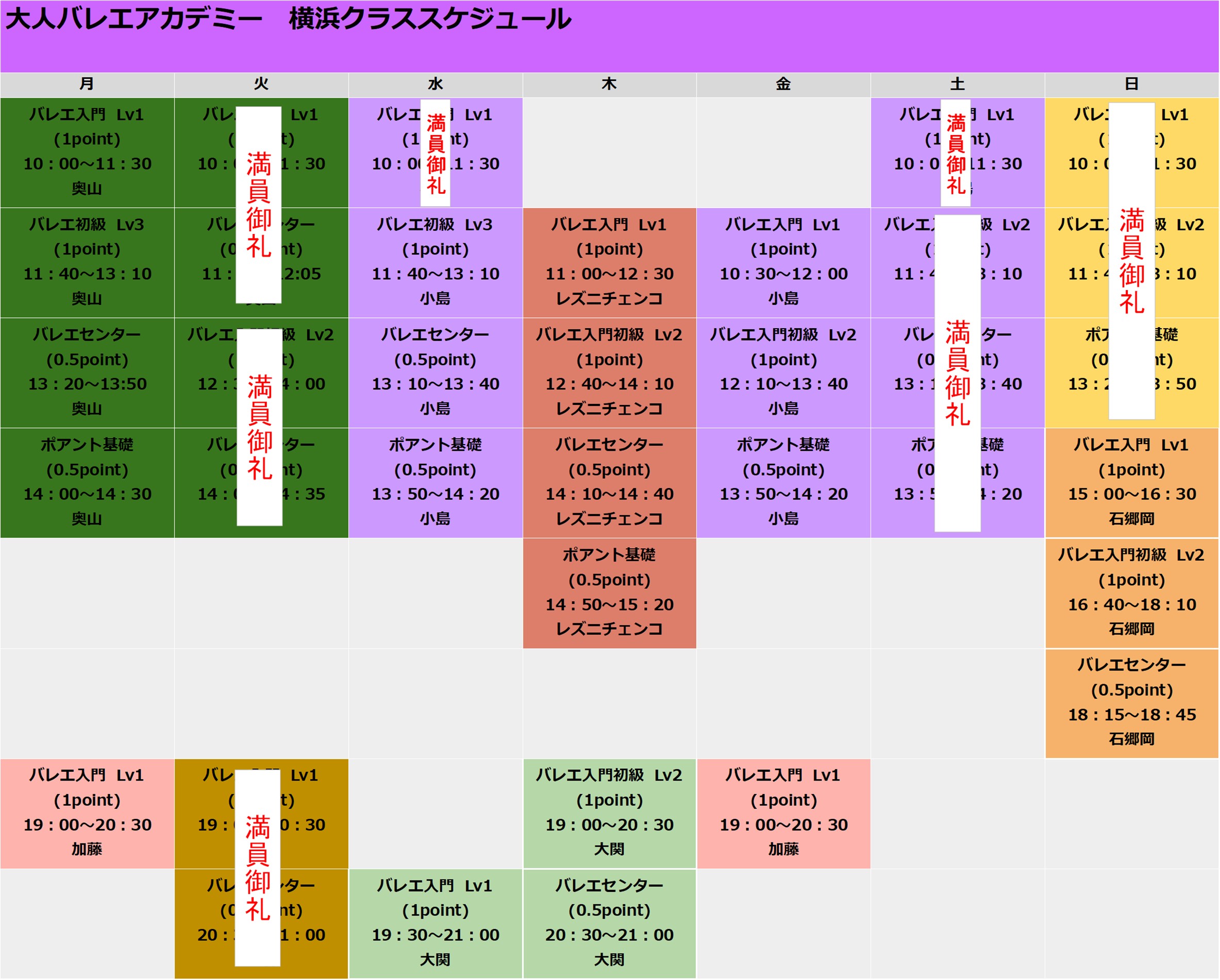 下記の満員御礼のクラスは体験を受け付けておりません。