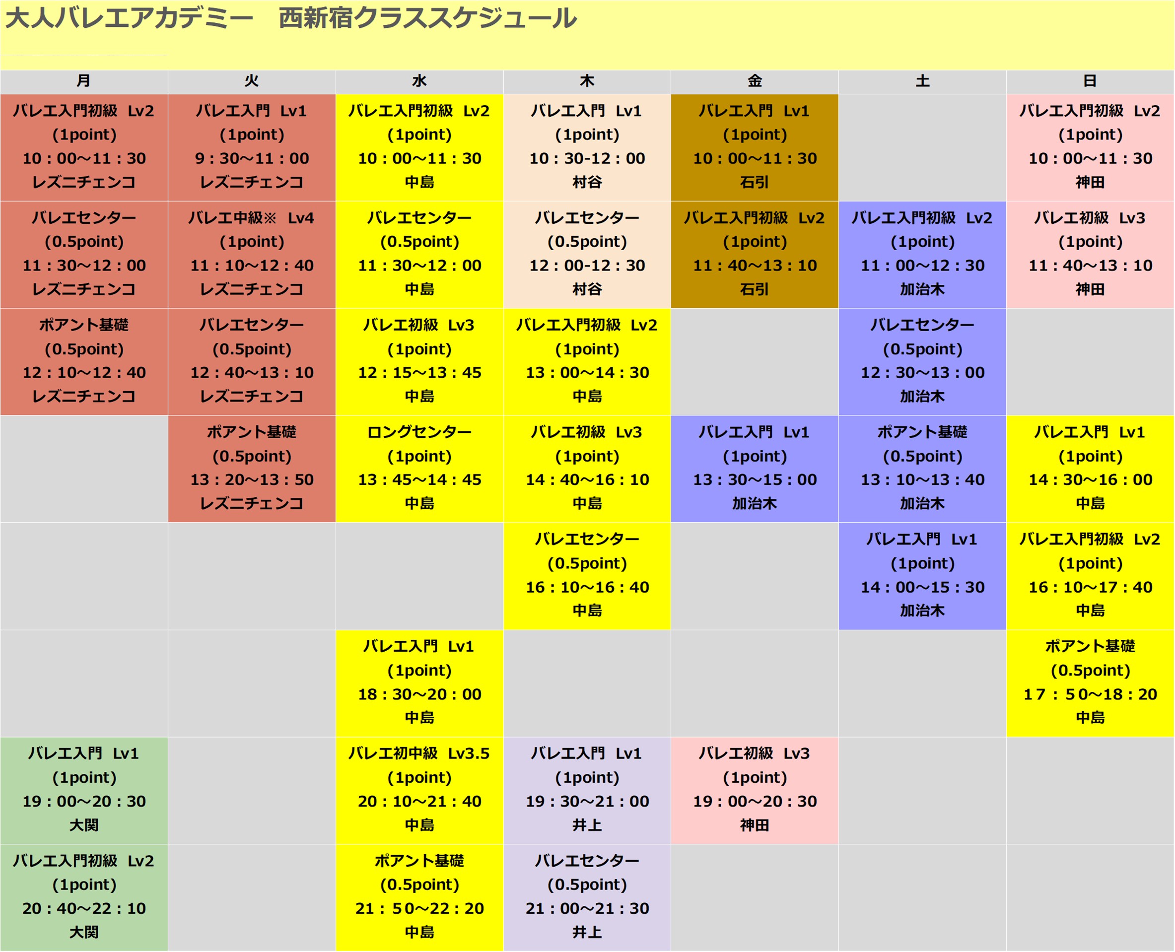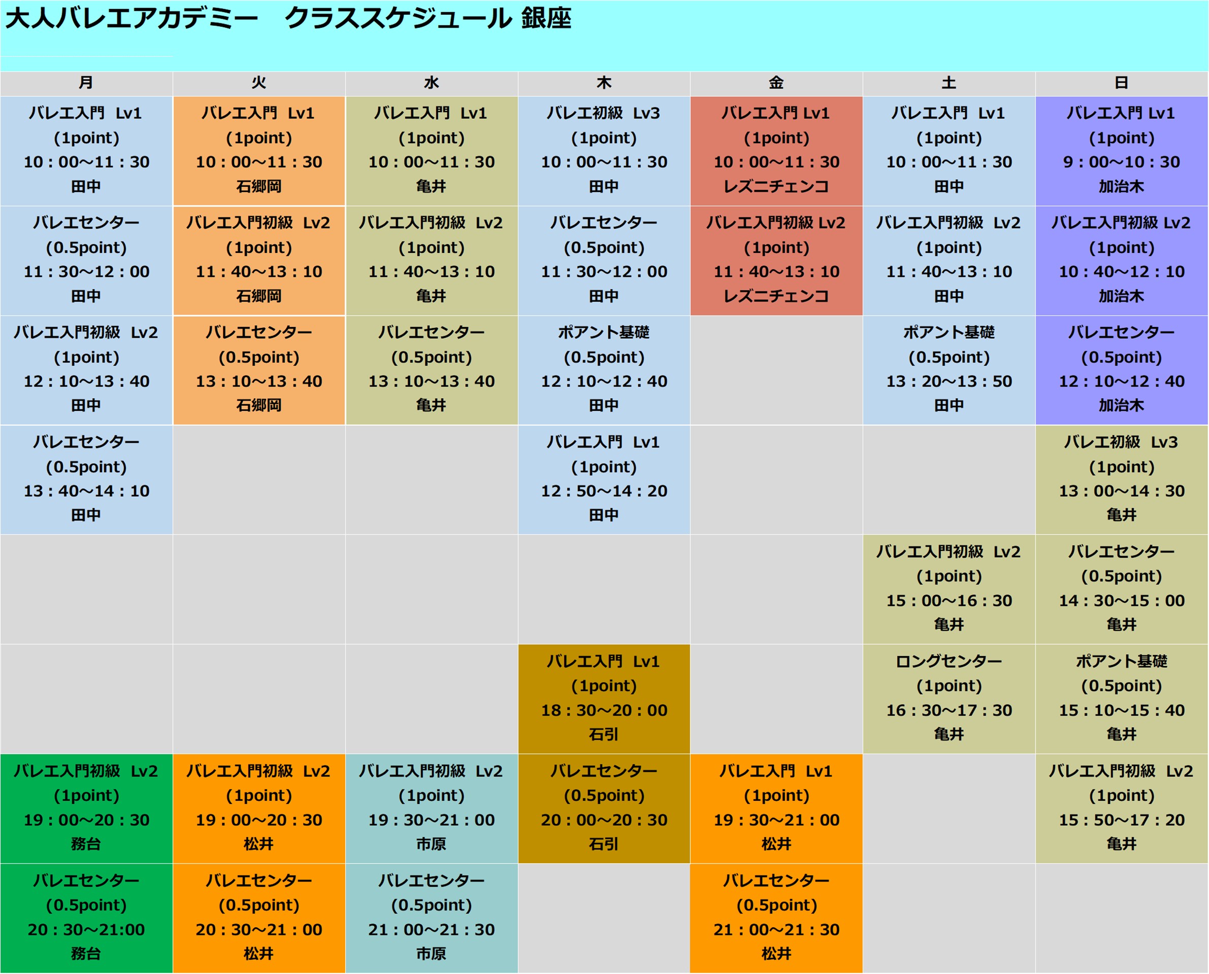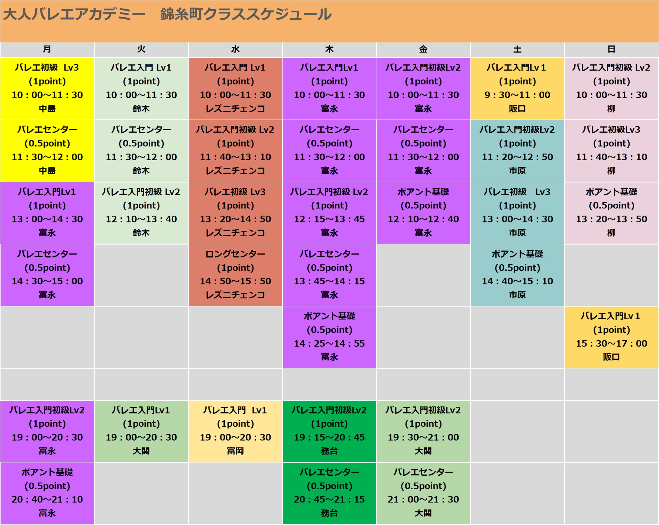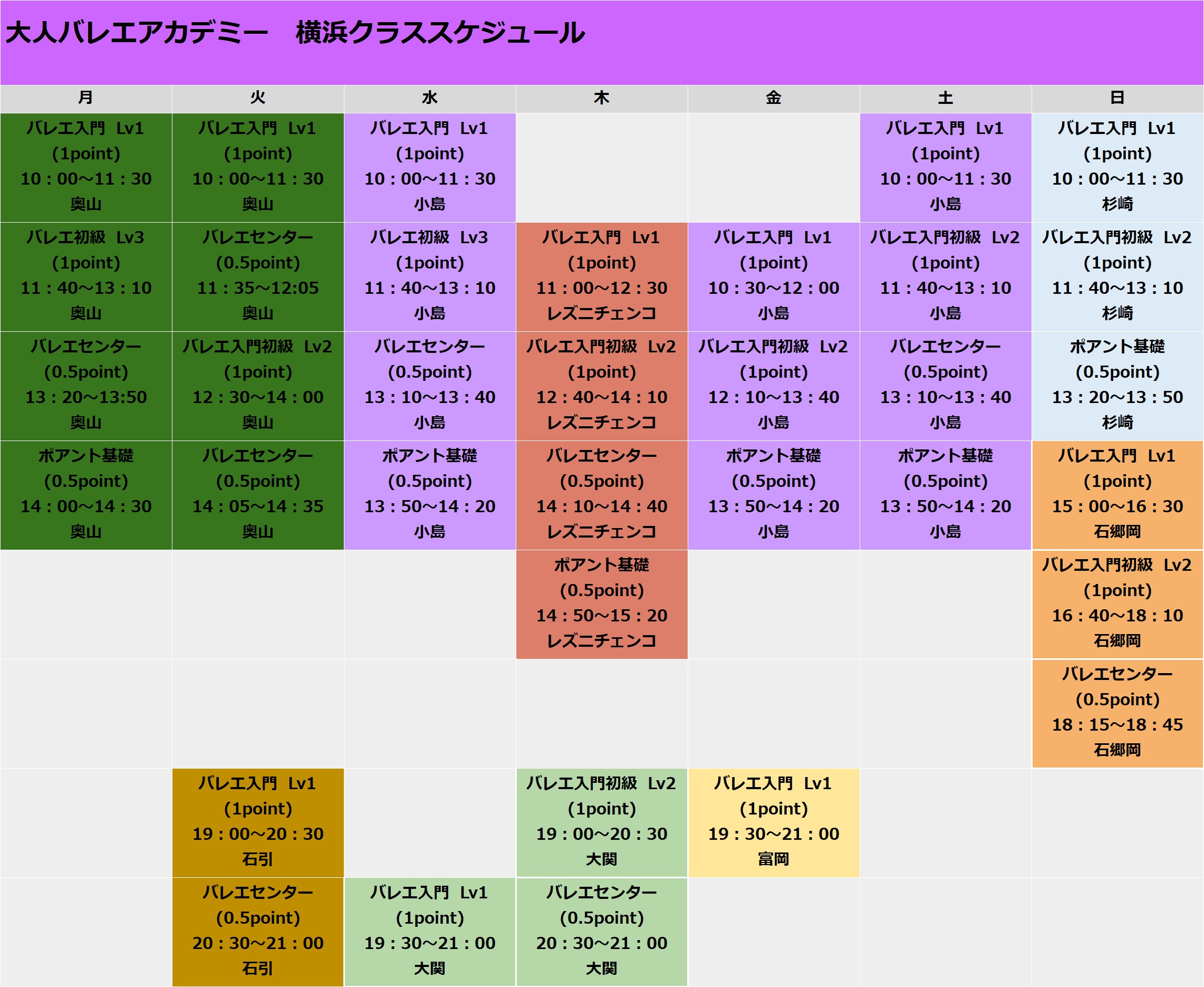 ※センター、ポアント、ロングセンターのオプションクラスは90分のメインのクラスを受講なしに受けることはできません